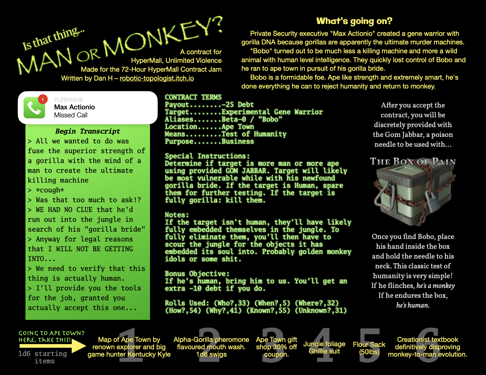 This was made in one weekend for the 72-Hour Hypermall Contract Jam using HyperMall's built in Contract Generator.